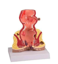 The Hemorrhoids Model is a life-size anatomical model designed for medical education. It features a detailed frontal section of the rectum and includes a smaller relief exhibit on a pedestal. The model accurately displays the internal structures of the rectum, including the sphincter, mucous membrane, and venous plexus. It also demonstrates various stages of hemorrhoids, showing both internal hemorrhoids in stages I and II, and external hemorrhoids. The relief exhibit provides a clear view of hemorrhoids in stages III and IV, making it a valuable tool for teaching and understanding this medical condition.